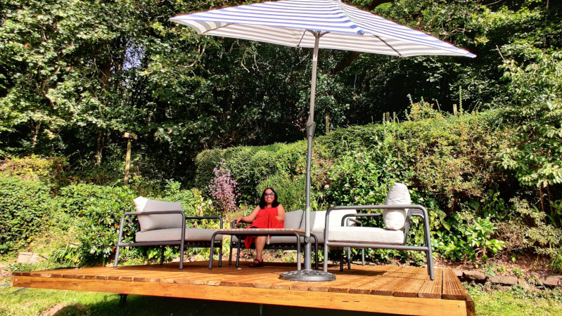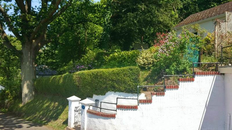 The garden is large and on a series of levels or terraces. It is located on a hillside facing south-west. It's an ideal sunbathing spot for an all-over tan. The top garden is surrounded by woodland. It's our sunny glade. In the central area is a decking area and delightful lawn. The liberty lawn.