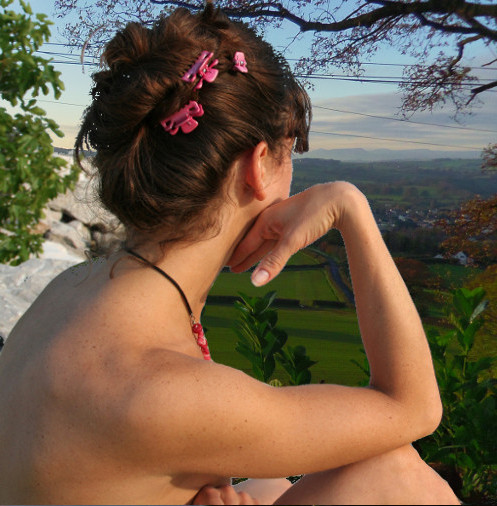 The patio with loungers is just below the main house. Hedges and trellis provide privacy. It is a well sheltered spot so that any time the sun shines nude sunbathing is possible giving opportunity to get an all over tan.