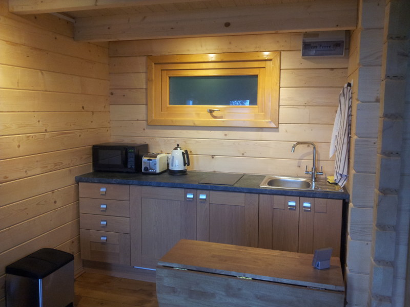 The kitchen area has modern styling and is well equipped. It includes a fridge, 2 ring induction hob, microwave with grill/microwave combination and all pans and utensils suitable for both. Of course, there is also a full set of plates, bowls, cups, glasses, cutlery and cooking utensils. Tea towels are in the drawer and cutting boards. There are tea bags, coffee and sugar in the cupboard to get you started plus a start up amount of cooking oil and herbs and spices.